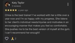The accountability and commitment of attending a class have been key to my success. When I signed up, my goal was to regain lost motivation for healthy eating and a solid workout routine. Through this experience, I’ve not only rediscovered that motivation but also improved my overall health and even found relief from chronic neck pain. My trainer has played a key role in constantly challenging me and educating me in ways that have helped me progress, making this journey both rewarding and sustainable.